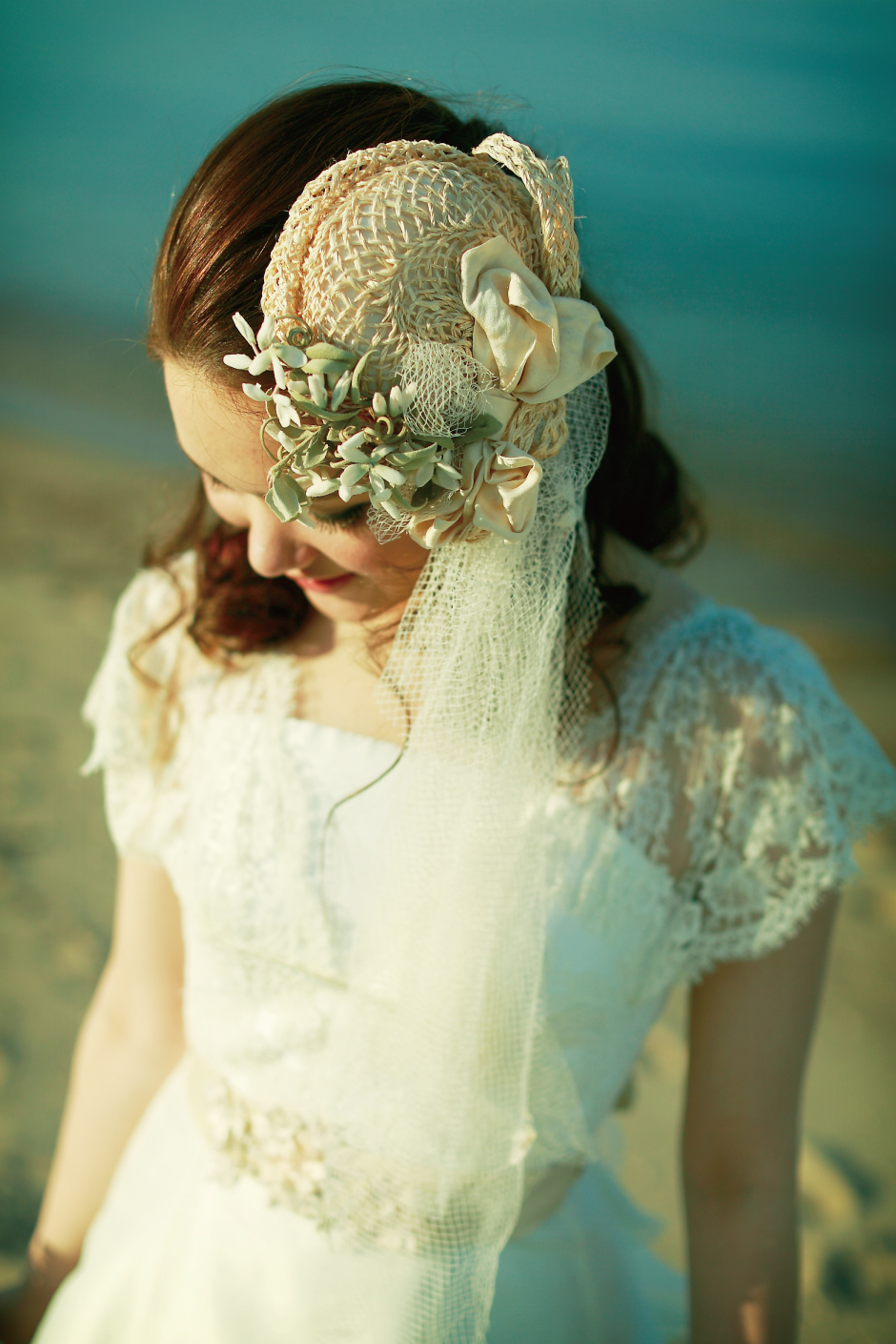 シンプルなAラインドレス。スカートにはオーガンが重なり、上品なレースのボレロが取り外し可能なドレス。ナチュラルなドレスは、ガーデンウエディングやレストランウエディングにも最適。